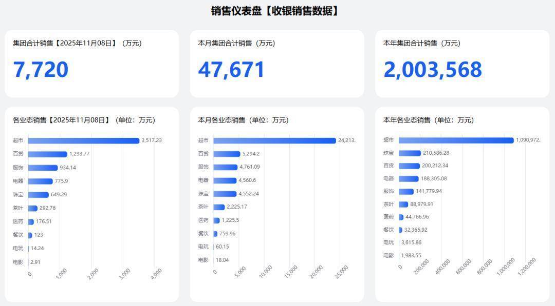 从2025年各业态销售情况来看,超市业态销售额超109亿元,其次是珠宝(21亿元)、百货(20亿元)、电器(18.8亿元)、服饰(14亿元)等。